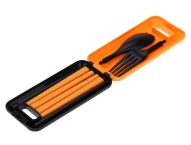 Includes a reusable plastic fork, spoon, and pair of chopsticks. Easy to clean, safe and environmental: made of ABS, no harmnless to human body.