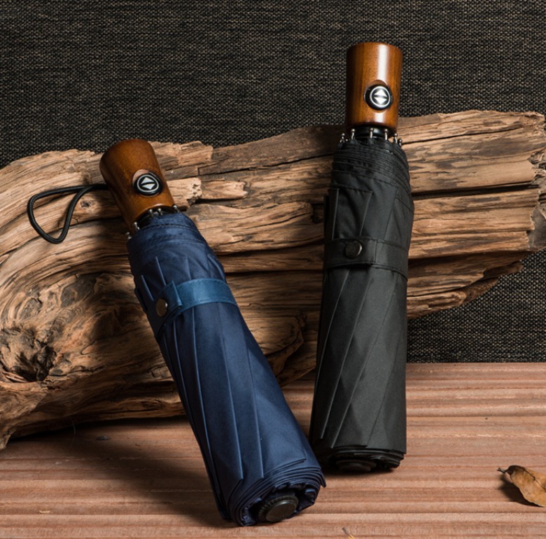 Travel Umbrella, Real Wood Handle, Auto Open & Close